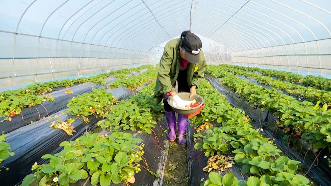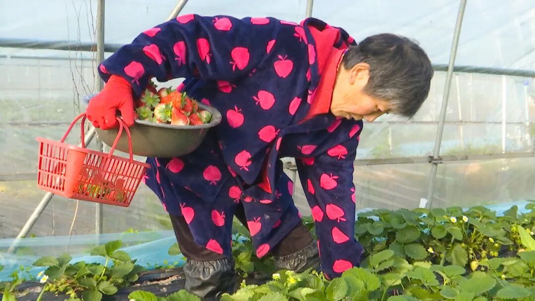 大学生村官助理周艳芳说,这片土地共有53亩,租给经营户每年定期收取土地资金12万元,并且他们还会按照经营户的经营效益情况来提取10%的分红。草莓采摘结束之后,预计能为村集体经济增收20余万元。