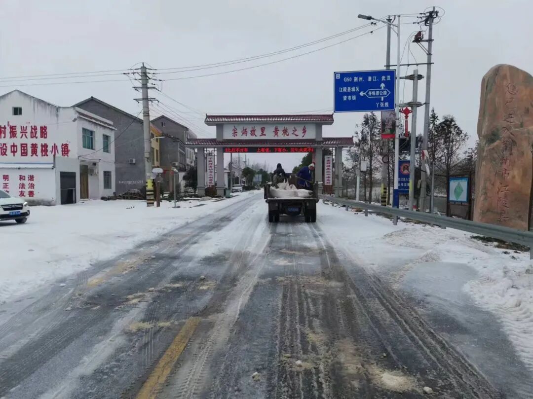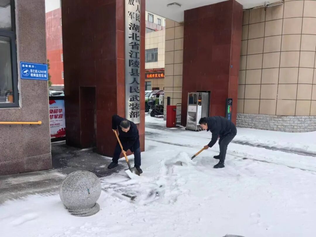 2月22日早上,县融媒体中心组织干部职工赶赴包保责任区域仙鹤大道至江陵大道开展铲冰除雪,用铁锹为群众铲出了近3公里安全行走的道路。