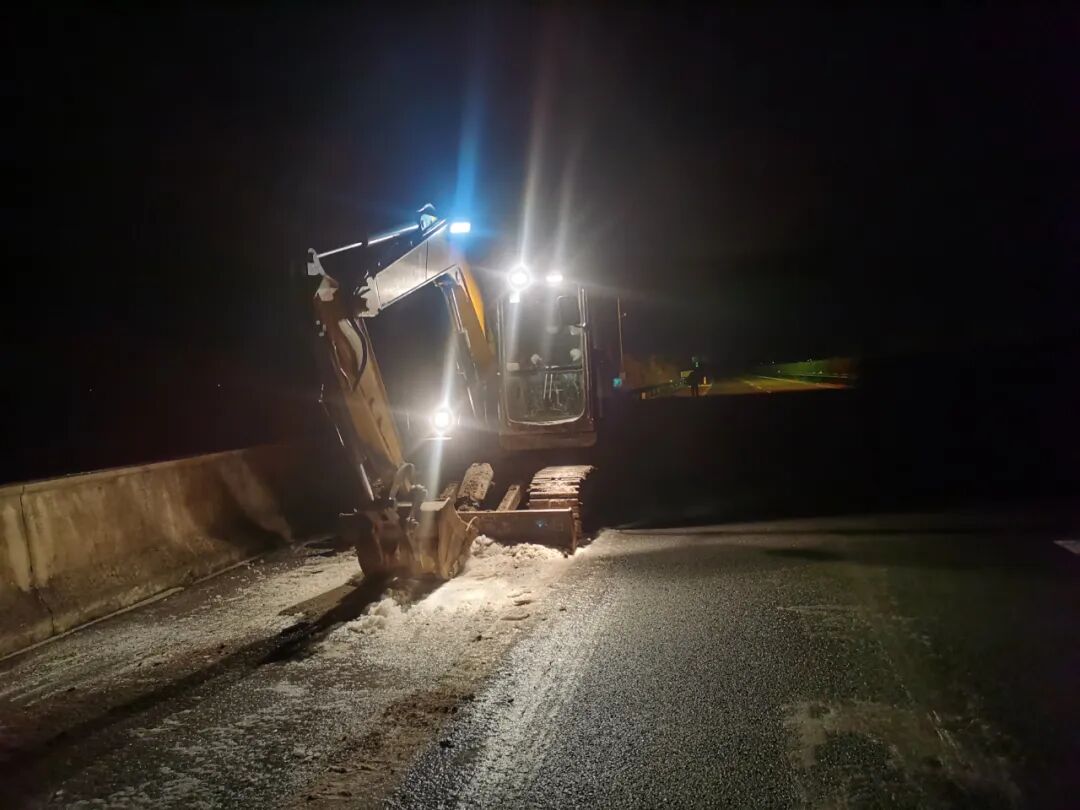 2月21日夜间,县交通运输局的工作人员冒着风雪布撒融雪剂。据了解,截至22日8时,全县高速公路、国省干线通行正常、无阻断。县交通运输局累计投入人工526人次,机械设备130余台次,撒布融雪剂360吨、防滑料120立方米。