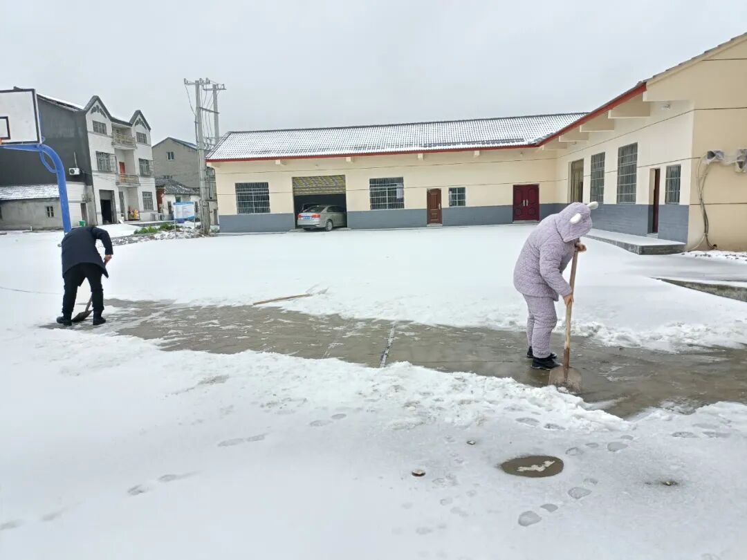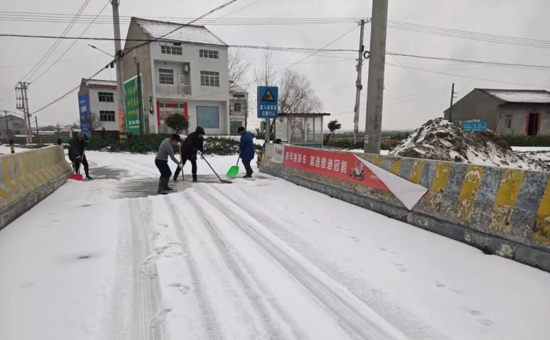 秦市乡张公垱村村民积极参加铲冰除雪活动。