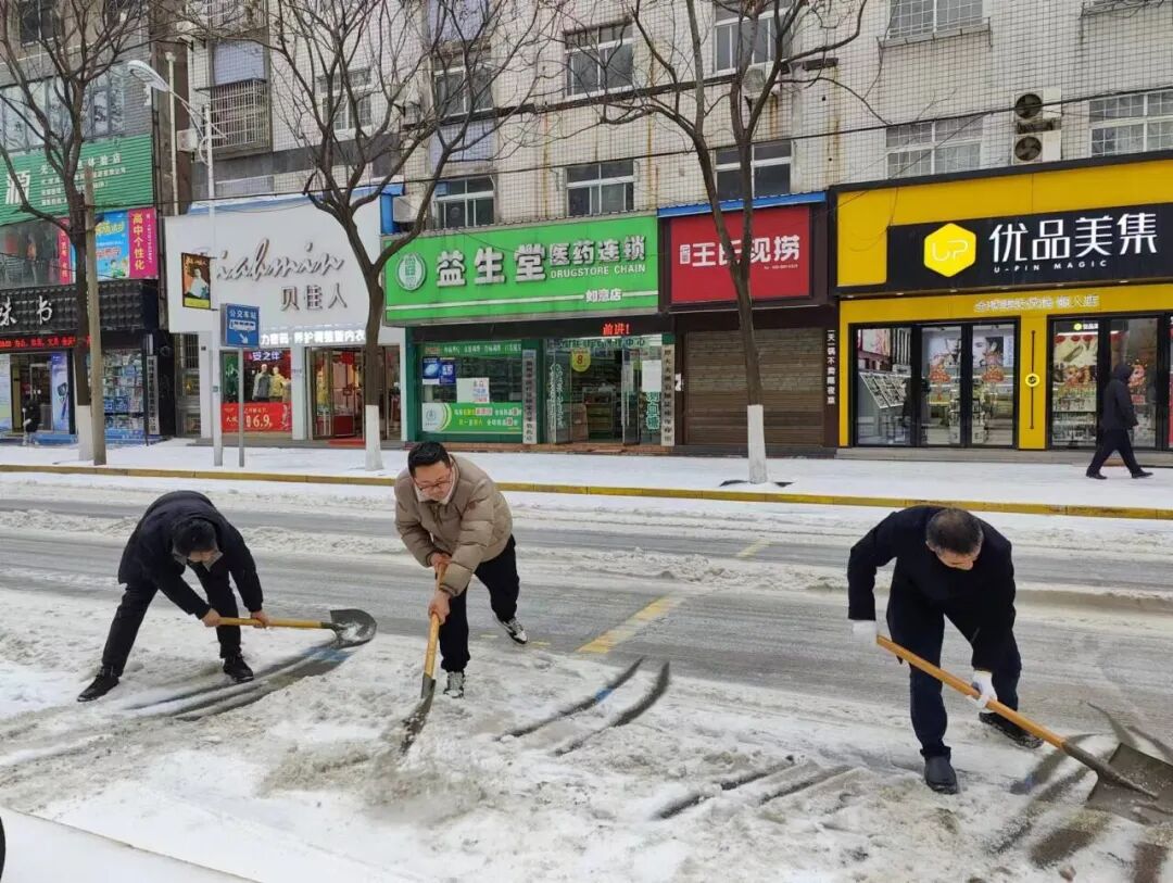 普济镇机关组织机关干部持续开展铲冰除雪行动。