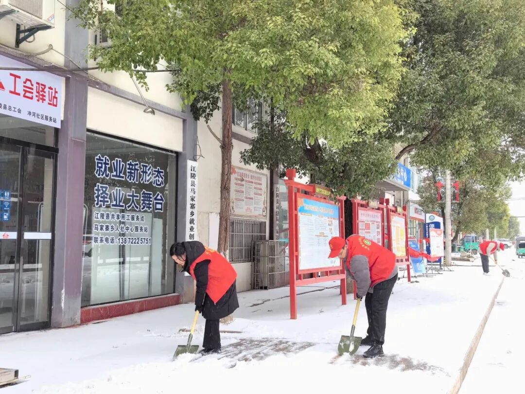 2月22日上午,江陵县税务局积极组织党员干部职工到沿江社区、楚才路开展义务铲冰除雪活动,保障市民安全出行。