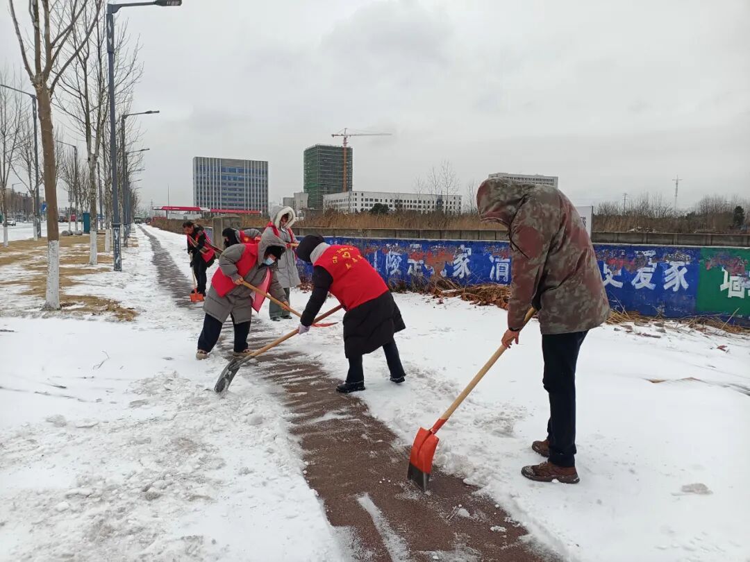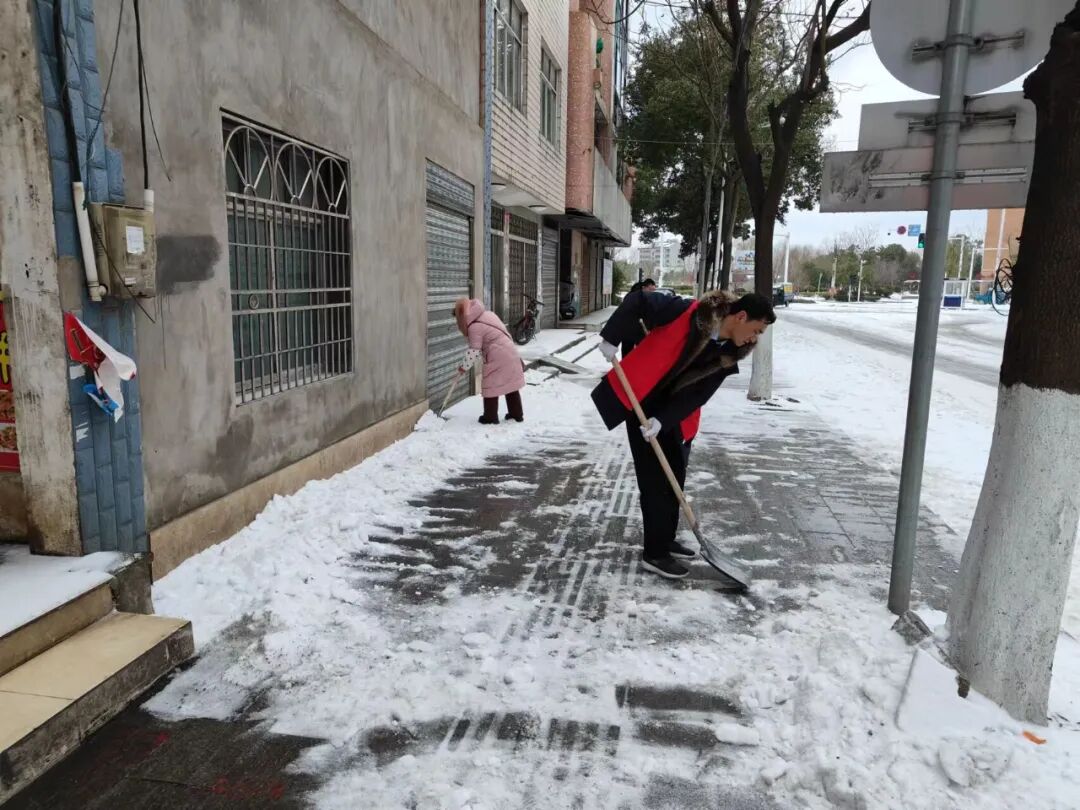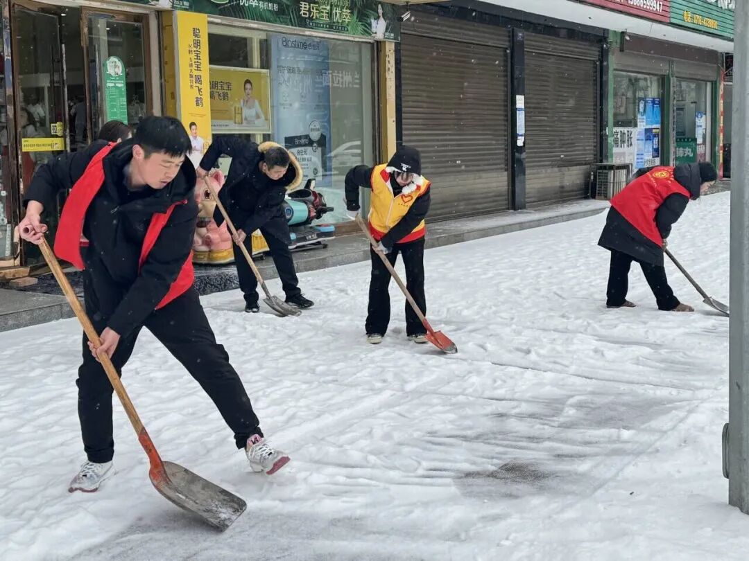 2月22日,团县委组织机关干部、大学生志愿者前往社区开展铲冰除雪行动。