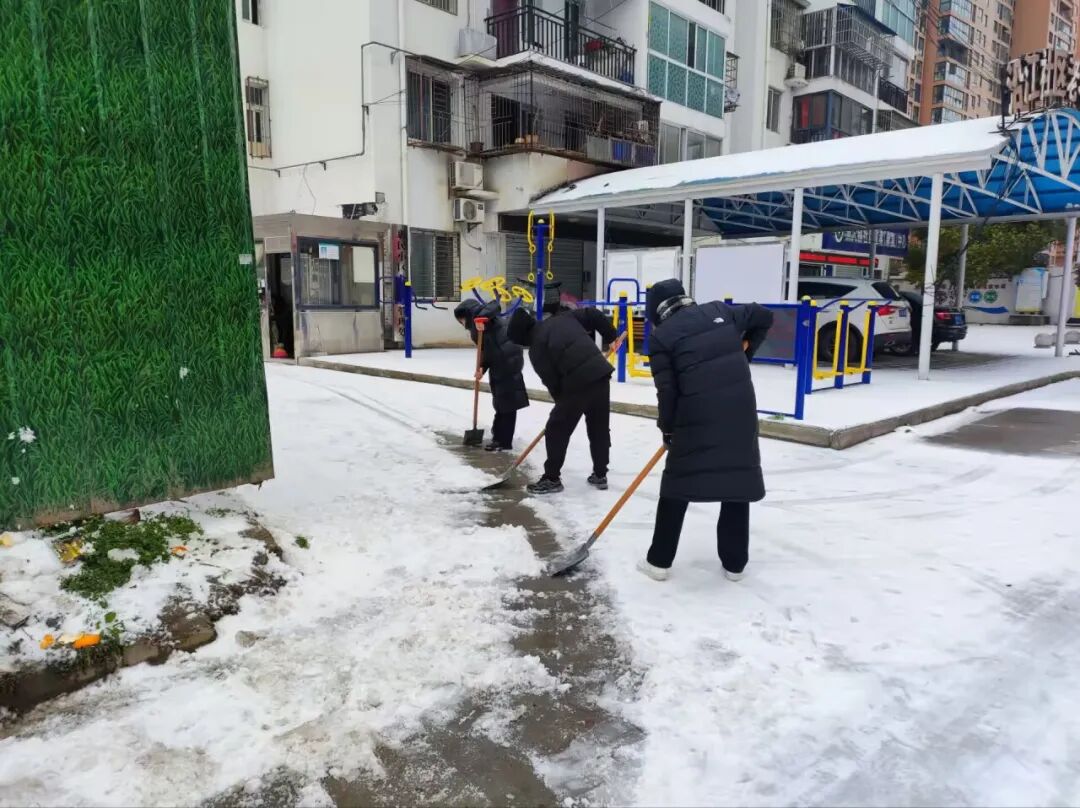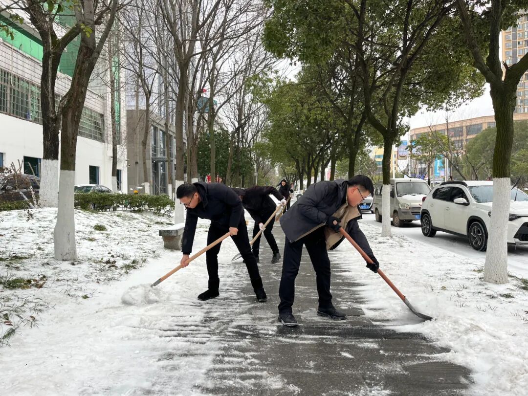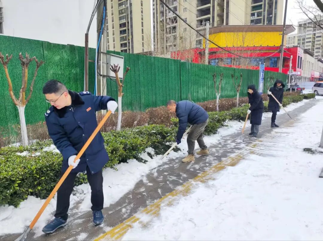 2月22日,县住房公积金中心党员干部开展铲冰除雪活动。