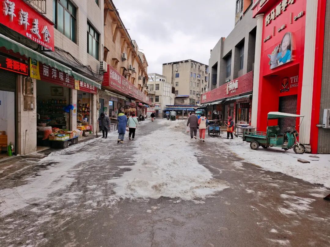 2月22日,江陵县创卫市场管控工作专班成员带领部分商户,对郝穴大市场出入口和主要干道进行铲冰除雪,打通了全域通道。
