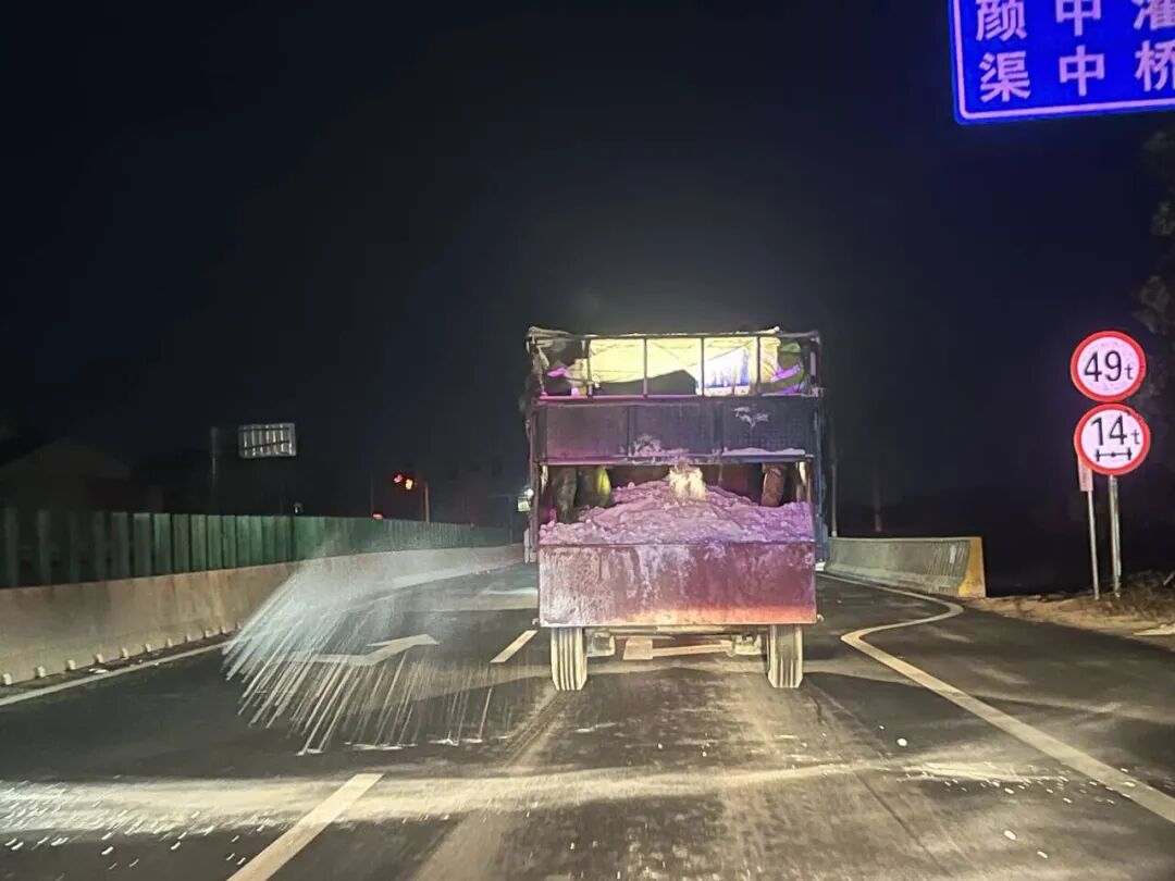 2月21日晚,普济镇连夜对G234、G351等路段开展撒盐作业。