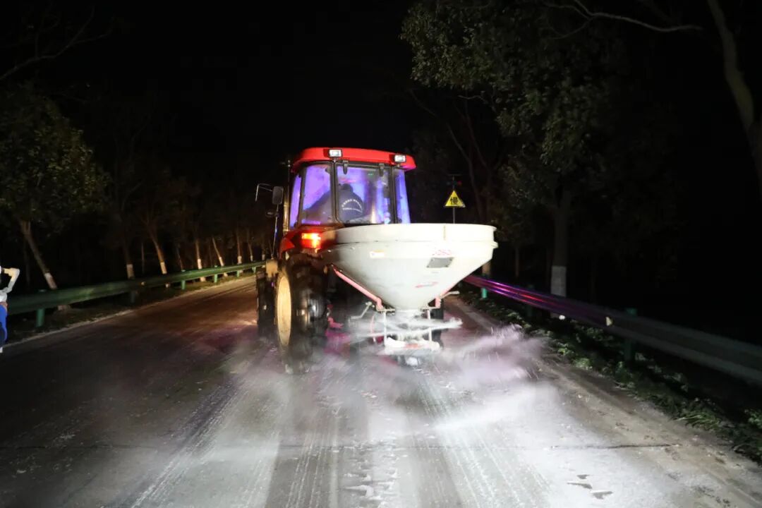 汤乐海说,他们来回在路上撒盐,道路接近8到10公里,为了保障村民出行方便和道路畅通,累一点、冷一点都值得。马家寨乡党委副书记陈雅云说,辖区内的5条道路安排了专门的人员队伍,还调配了26台机械,目前采购工业盐35吨,动态存量保持在每天10吨的动态储备,已经开展了5轮的道路撒盐工作。