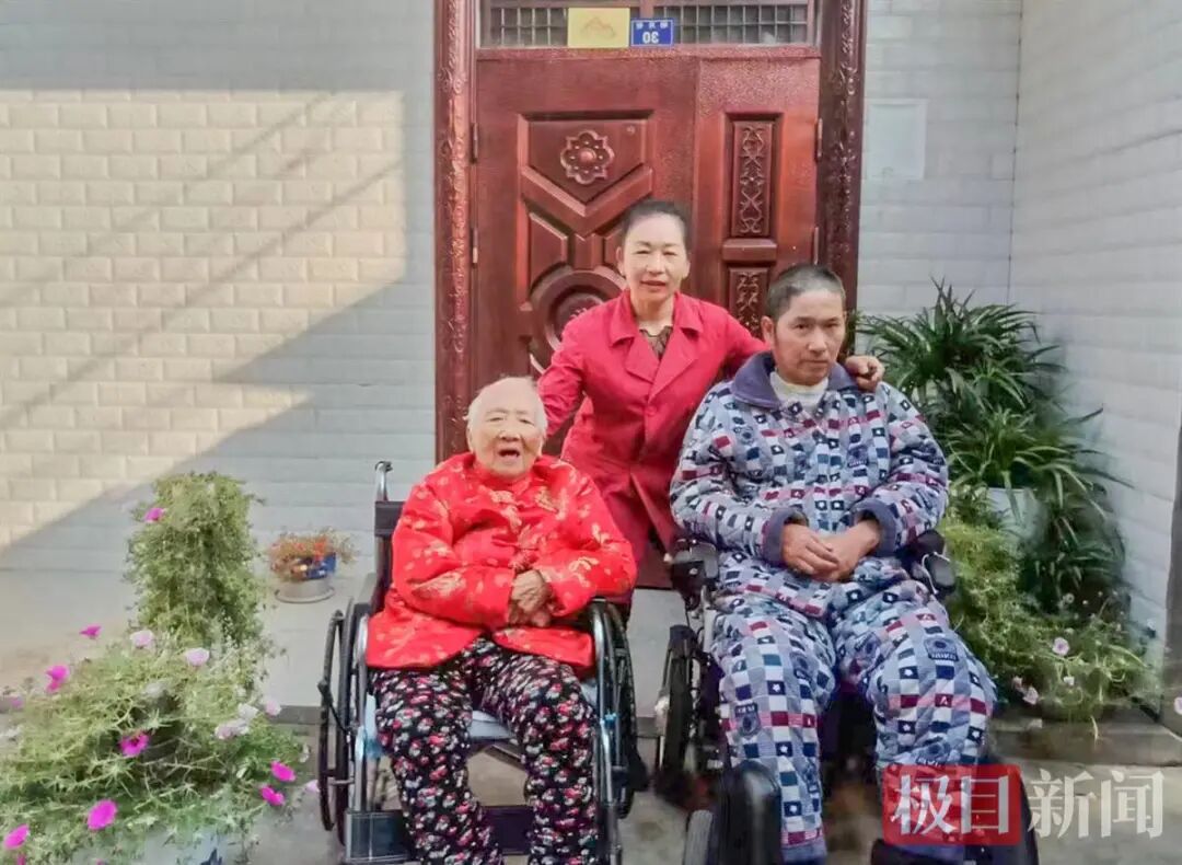 2022年,陈春娥与丈夫、母亲,在自家门前拍摄的全家福(受访者供图)