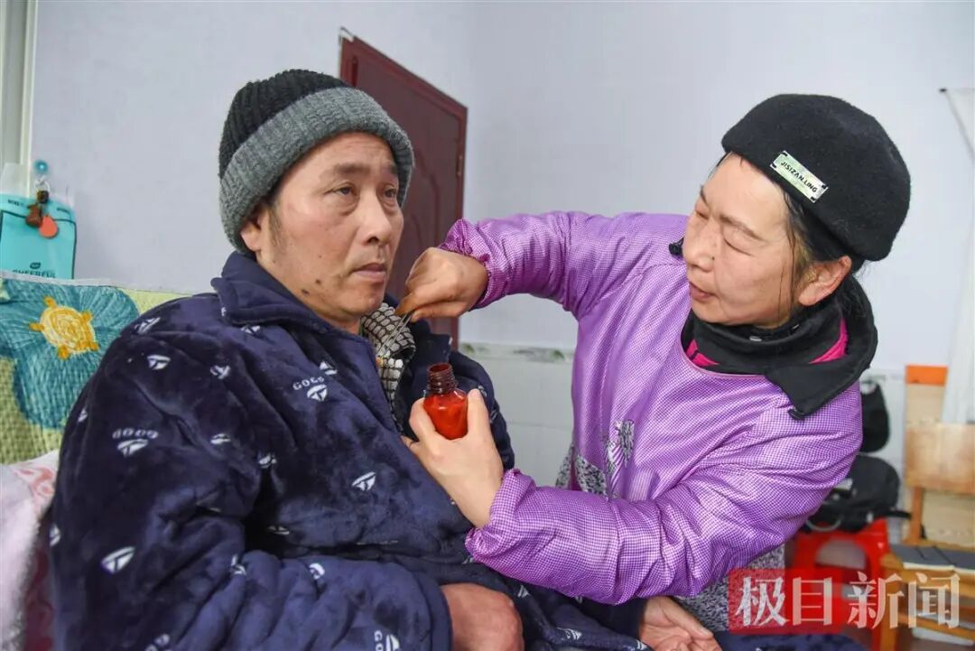 今年即将迈进60周岁的朱荆州,看上去并不显老。或许是陈春娥照顾得太心细,以至于让极目新闻记者觉得,眼前的朱荆州,不太像一位卧床8年的病人。