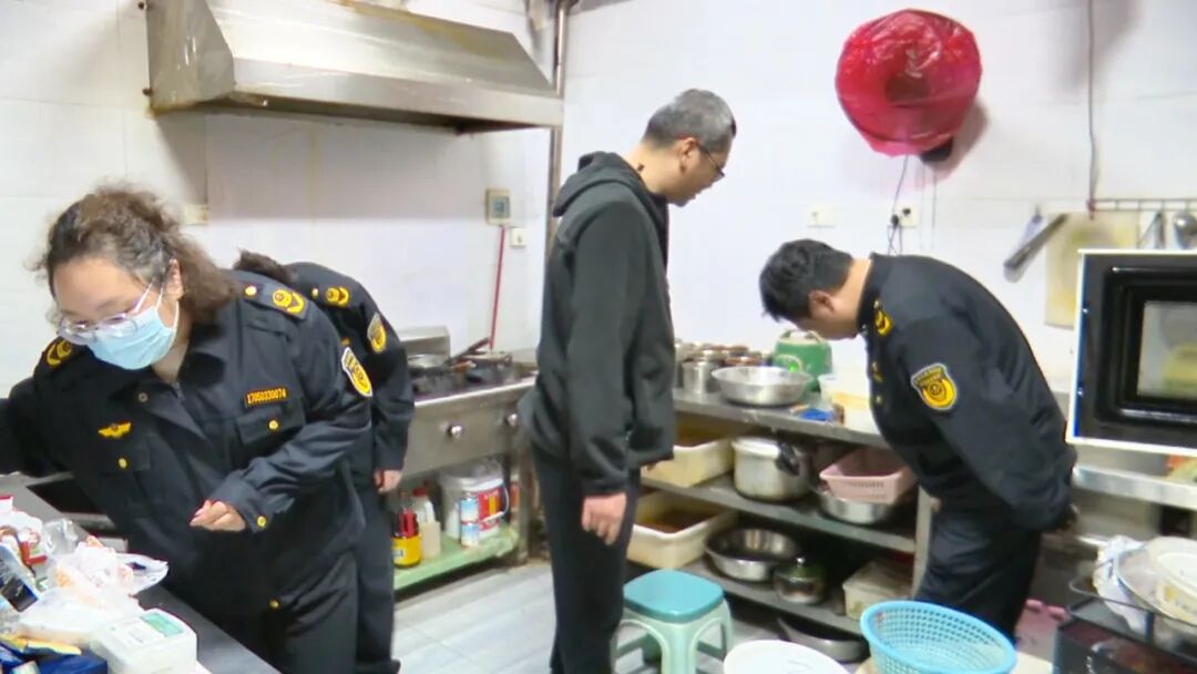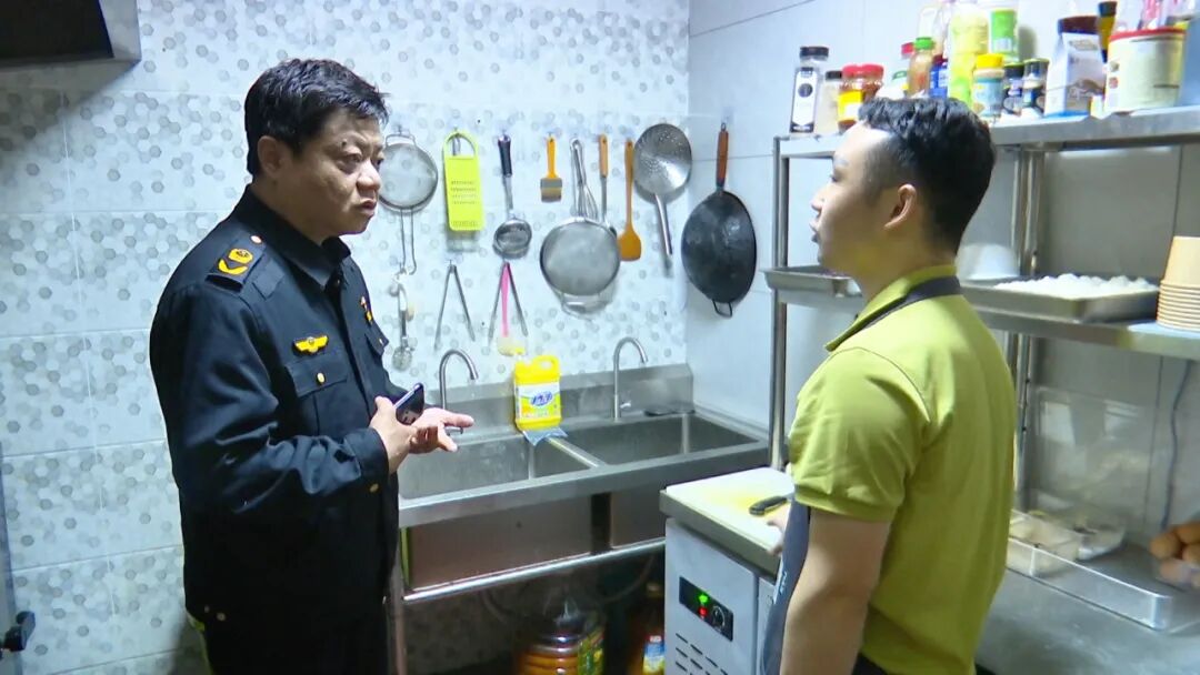 在中央半岛的餐饮店,小编看到,执法人员正在对店内食品生产经营主体的环境卫生、三防设施配备等进行检查。