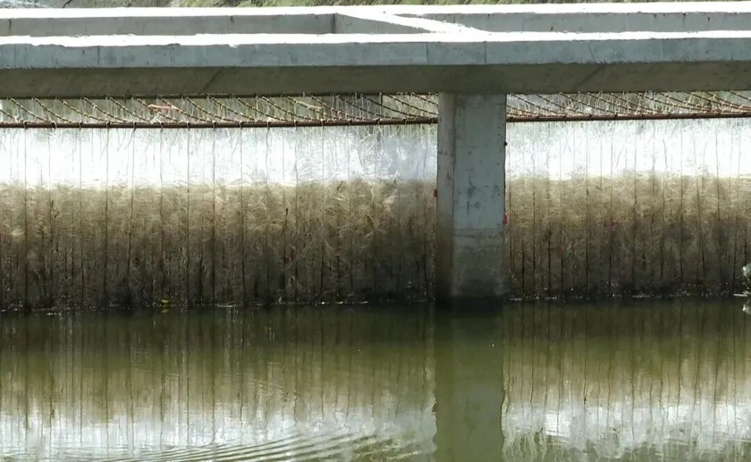 李爱民说,种植水草主要是通过水草的生长,来收集养殖尾水当中的氨氮成分含量,使水体富营养程度降低。同时降低一些有毒成分的含量,对水体进行净化。关于拦水坝的装置,主要是通过物理过滤的方式,对水体中的一些有害藻类,进行拦截净化。