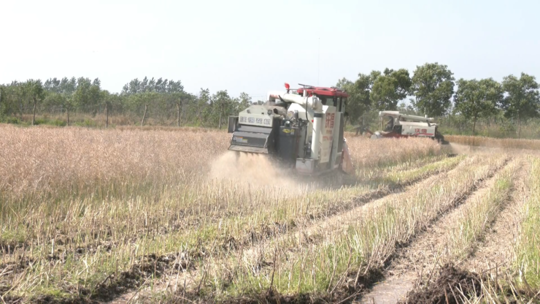 近日,秦市乡的油菜进入收割季,当地农户运用新机器新设备,抢抓时间收割油菜,田间地头一片繁忙景象。