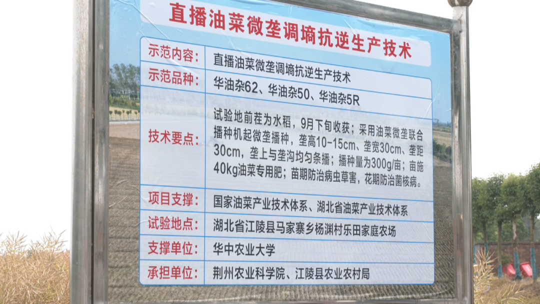 江陵县主要种植胜利油菜、中油和华油等品种。采用全程机械化种植,包括机械播种、精准施肥和分段机收,同时引进植保无人机进行病虫害防治。这些举措使生产成本降低了5%,有效提高了油菜生产的综合经济效益,每亩地增收百元以上。