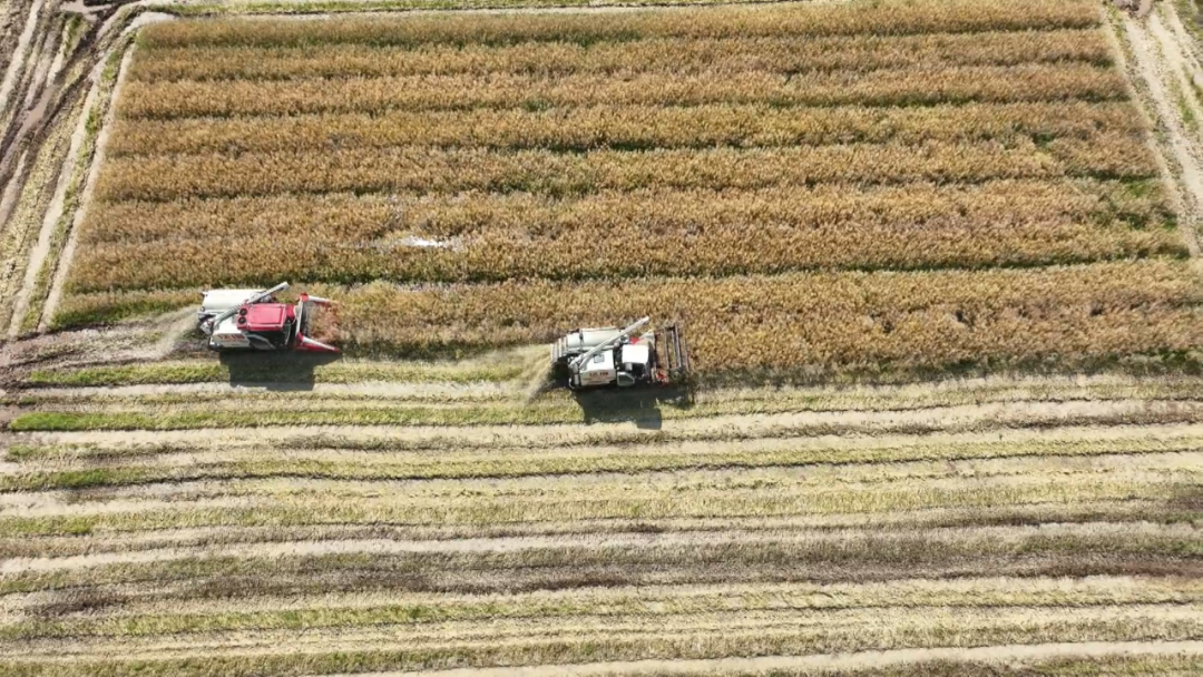 近日,江陵县35万亩油菜陆续进入成熟期,农户们正抓住晴朗天气,利用机械化手段高效地进行收割作业,确保油菜籽颗粒归仓。
