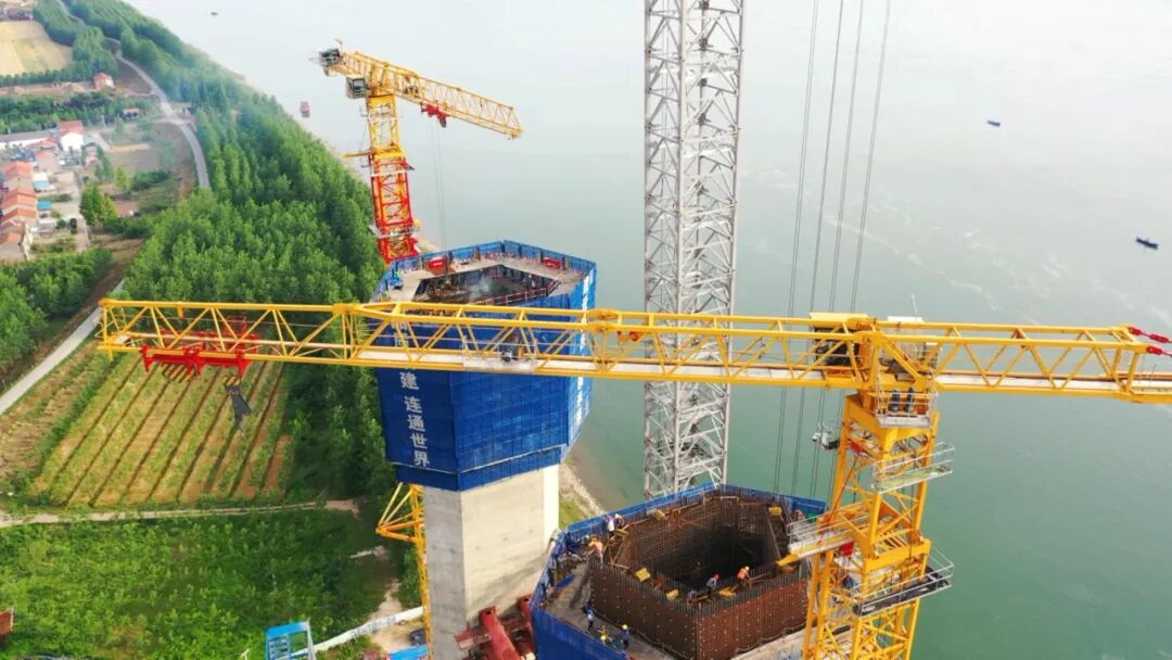 该项目工程师杨思哲介绍,观音寺长江大桥主塔目前正进行第14节段塔柱施工,到第17节段结束即可突破主塔百米大关,他们正在全力冲刺。目前全标段共有300余名工人奋战一线。