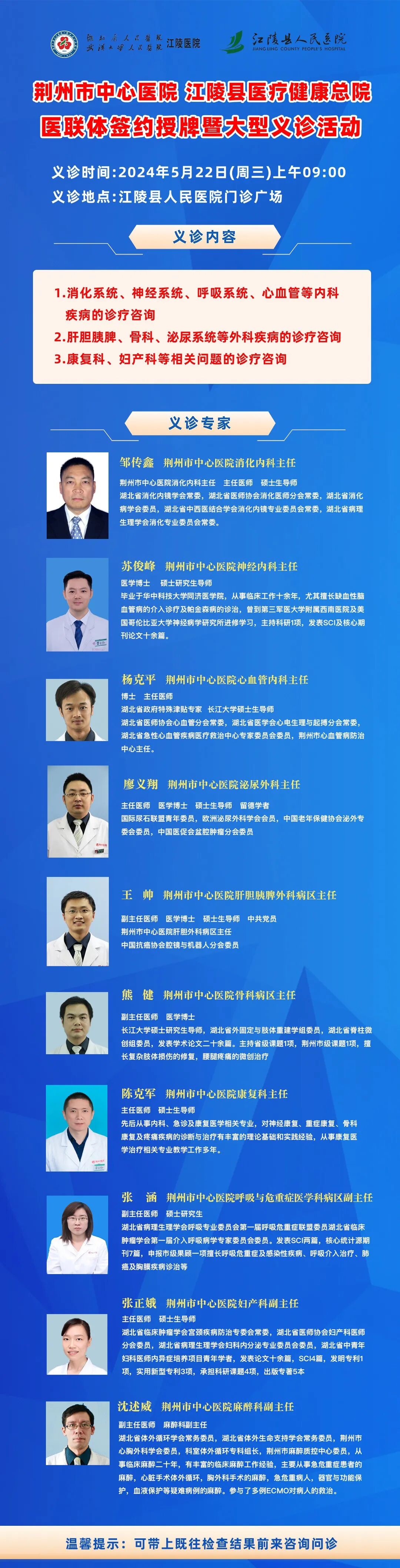 免费义诊来啦!5月22日,市级医疗专家将齐聚江陵