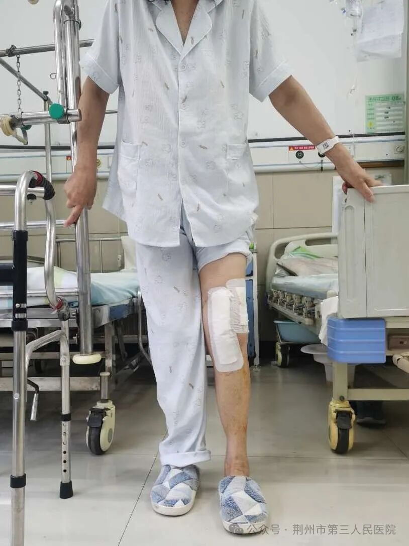 68岁刘阿姨左侧膝关节疼痛10多年,畸形已有几年,如今行走困难,几乎完全丧失劳动能力。X线显示膝外翻畸形,骨关节炎,关节面磨损严重。近几年,患者家属四处求医,其间选择保守治疗。但病情越来越重,只能长期服用止痛药物来缓解,为了得到更好治疗,不再被疾病折磨,患者家属四处打听后,最终选择来到荆州市第三人民医院骨外科就诊。