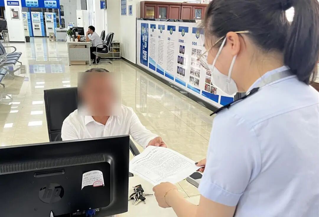 在江陵县政务服务中心,工作人员正在为万先生办理业务(通讯员供图)