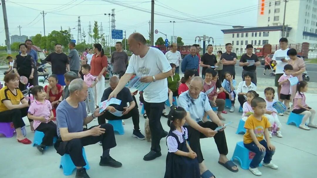 郝穴镇还通过播放露天电影丰富群众精神文化生活。在新园社区,社区工作者为前来观影的群众发放宣传单,宣讲防溺水知识。