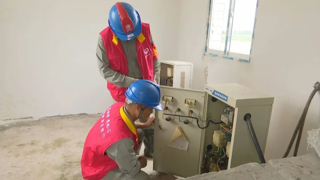 在普济镇杨岔路村的邓赵港电排站,由于排灌站停用已久,尚未接电,无法正常进行排涝。接到通知后,国网江陵县供电公司的工作人员脚踩泥泞肩扛电缆迅速奔赴现场。经过对变压器的细致检查过后,“鄂电红马甲”开始了排灌站的启动工作。技术人员对设备的核心部件进行替换,重置电缆,现场工作人员各司其职,有序开展维修工作,经过三个小时紧锣密鼓的抢修,电排成功恢复运转。