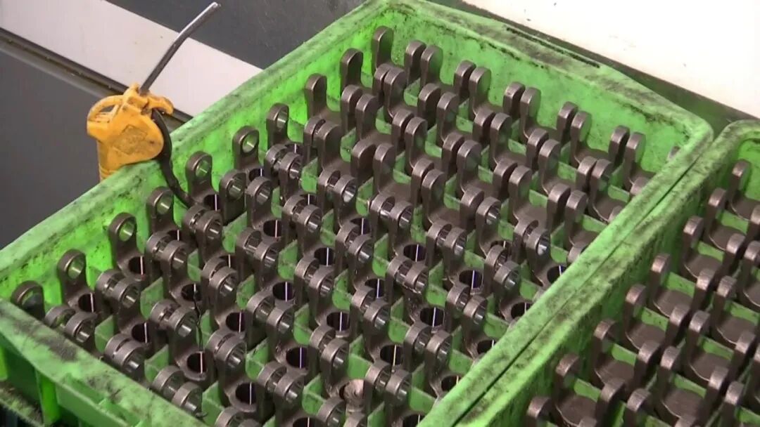 在该公司精密节叉生产车间,只见数排机械手臂上下翻飞,汽车转向节叉源源不断地送下生产线。