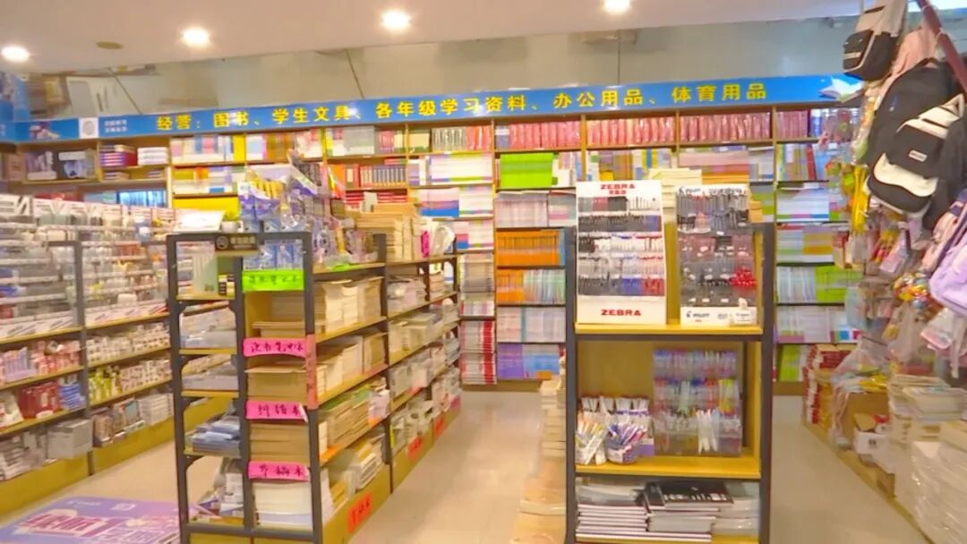 与此同时,学校周边的商超和文具店也有不少家长、学生在选购文具,货架上书包、作业本、书皮、笔等学习用品琳琅满目。