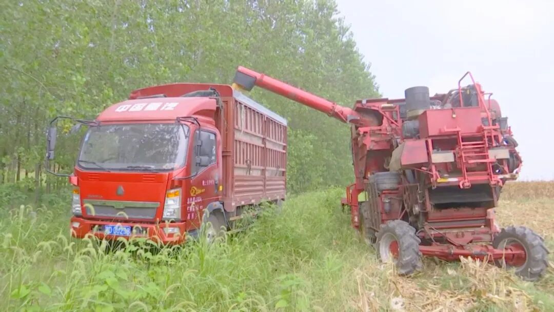 在马家寨乡马市村玉米地里,大型收割机和运输车辆在田野里来回穿梭,伴随着机器轰鸣声,一株株玉米连茎带穗卷入机器中,摘穗、剥皮、脱粒、秸秆粉碎,整个作业一气呵成。不一会,金黄饱满的玉米粒从卸粮口倾泻而下,空气中充满玉米浓香。