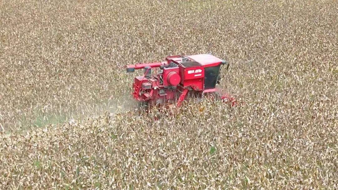 由于马市村主要玉米田集中连片、地域环境较为干燥,采用轮式收割机进行收割,优势更为明显。在收割过程中不仅能够做到收割粉碎一体化,还能起到减少损失、降低成本、提高效率的作用,做到玉米应收尽收,助力粮食颗粒归仓。