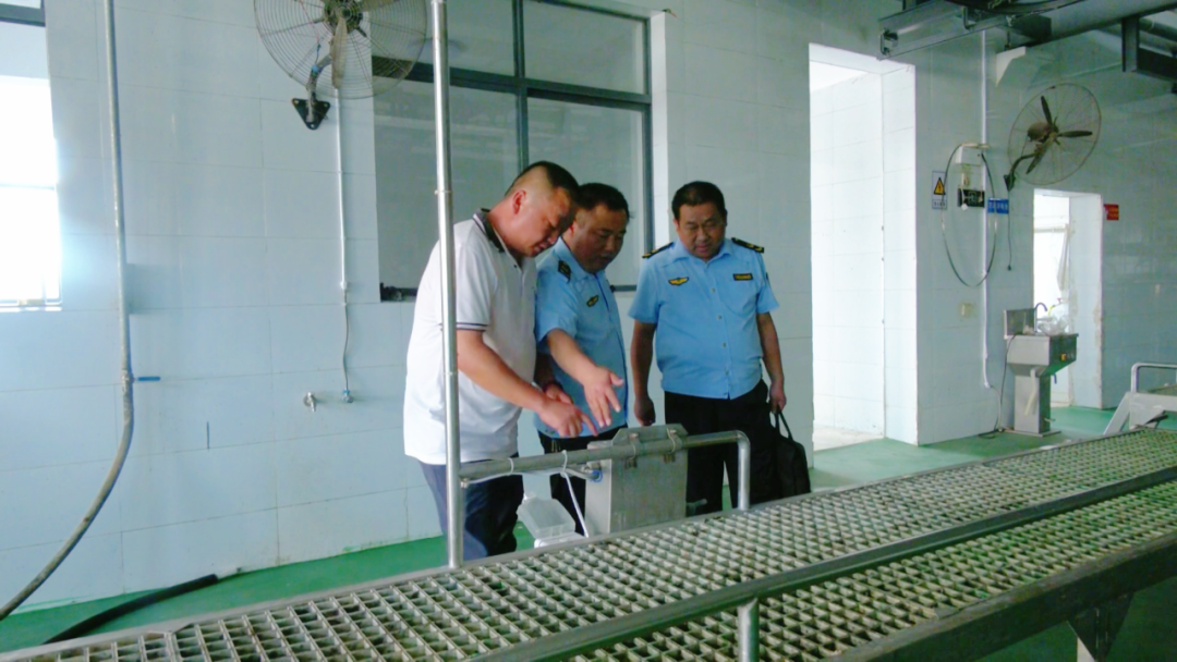 湖北省集鑫食品有限公司位于普济镇,主营牲畜屠宰、鲜肉零售及生猪农产品初加工等领域,目前正处于技改升级阶段。在屠宰车间、检疫申报室等地,县农业农村局联合县市场监督管理局,对该公司屠宰检疫工作情况、恶臭气体在线监测系统、营业执照等方面进行了细致检查。