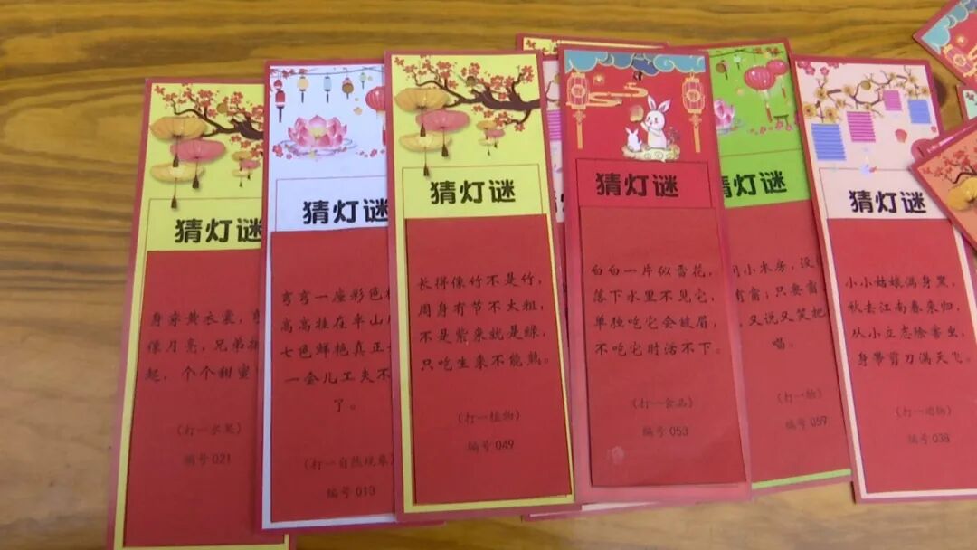 月饼制作完成后,活动进入了猜灯谜环节。一条条粉红色的谜语融入了知识性、趣味性,引起了社区居民们的浓厚兴趣。大家盯着谜题猜想,邻里间相互讨论,共同沉浸在解谜的乐趣中。