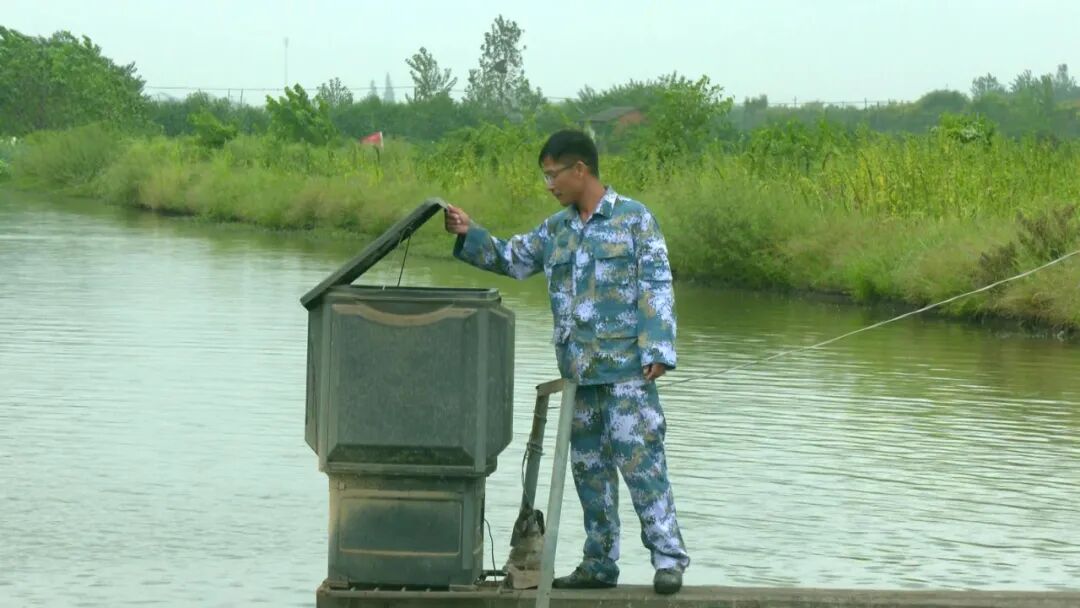 在江陵县丰河水产品专业合作社,合作社负责人朱裕磊正在检查投料机,为池塘里的“四大家鱼”和甲鱼投食。微风吹过水面,阵阵涟漪将塘里鱼儿吐出的泡泡击破,这批成品鱼,正在充分吸收养分。