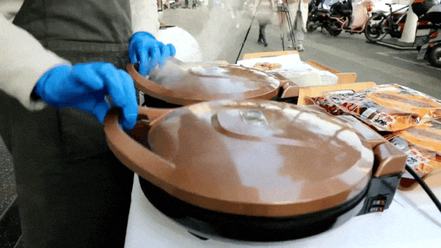 包入新鲜的牛肉或猪肉、梅干菜等馅料,迅速贴进了炉膛里,热腾腾的面香将肉香烘托到极致,而肥肉的油腻又被锅盔吸纳化为无形,又香、又酥、又软,吃起来非常过瘾。
