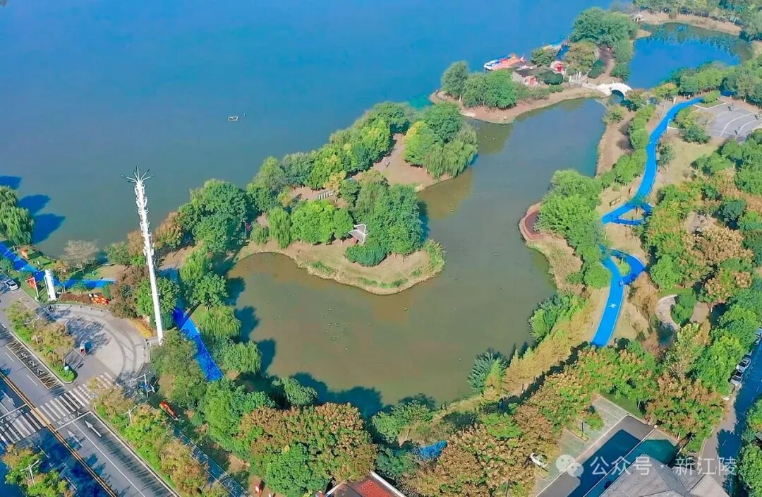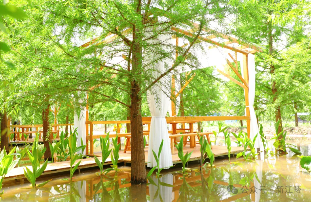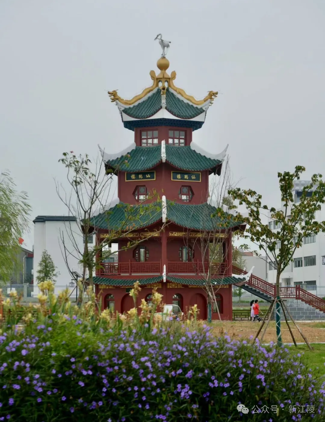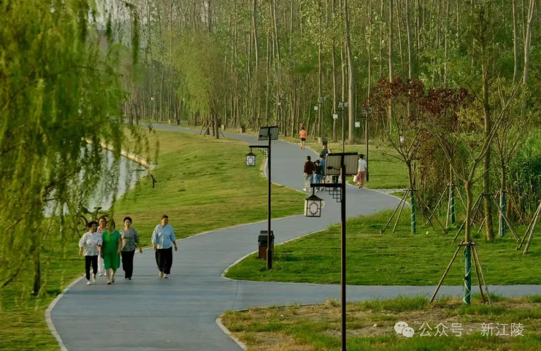 仙鹤楼生态公园是集生态保护、休闲娱乐、社会交往于一体的城市生态公园,将仙鹤楼、内荆河沿岸景观融成整体,目之所及皆是绿色,沿岸美景越发迷人。