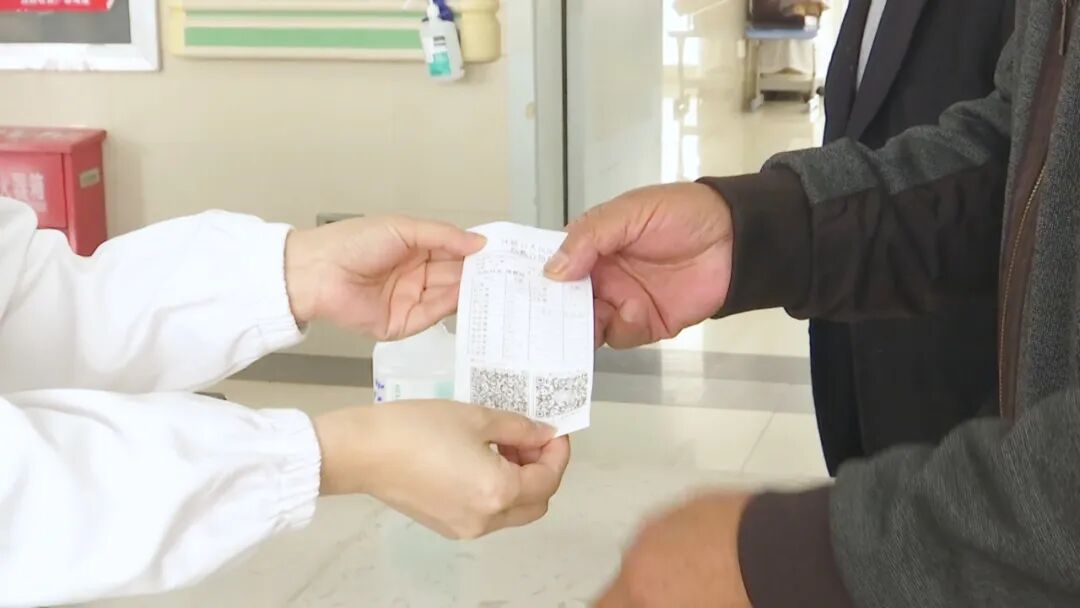 在县人民医院疼痛医学科护士站,一位患者家属正在医护人员的帮助下,为老伴办理医保结算和缴费手续,短短几分钟就完成了所有手续。