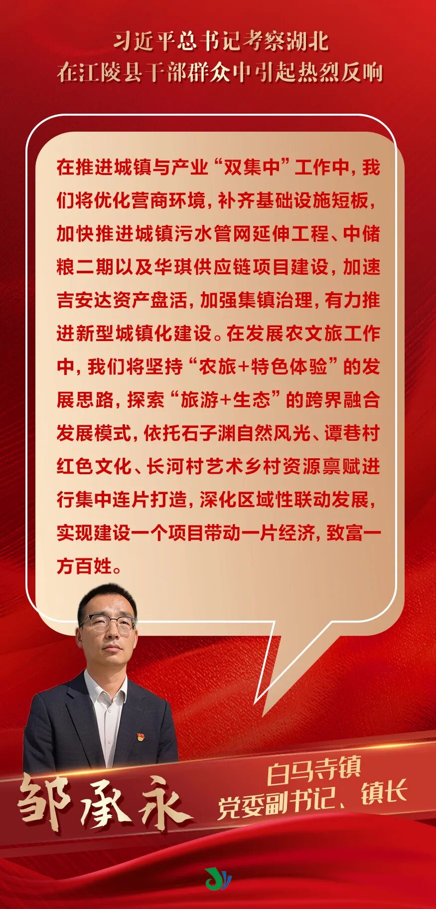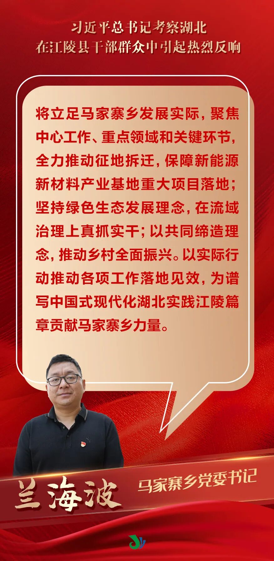 习近平总书记近日在湖北考察并作重要讲话、重要指示,为荆楚大地送来了强大的思想引领、精神鼓舞和前进动力,在江陵县干部群众中引起热烈反响。大家表示,一定牢记习近平总书记嘱托,坚决贯彻党中央决策部署,弘扬伟大建党精神,鼓足干劲,开拓创新,为奋力谱写中国式现代化湖北篇章注入江陵力量。