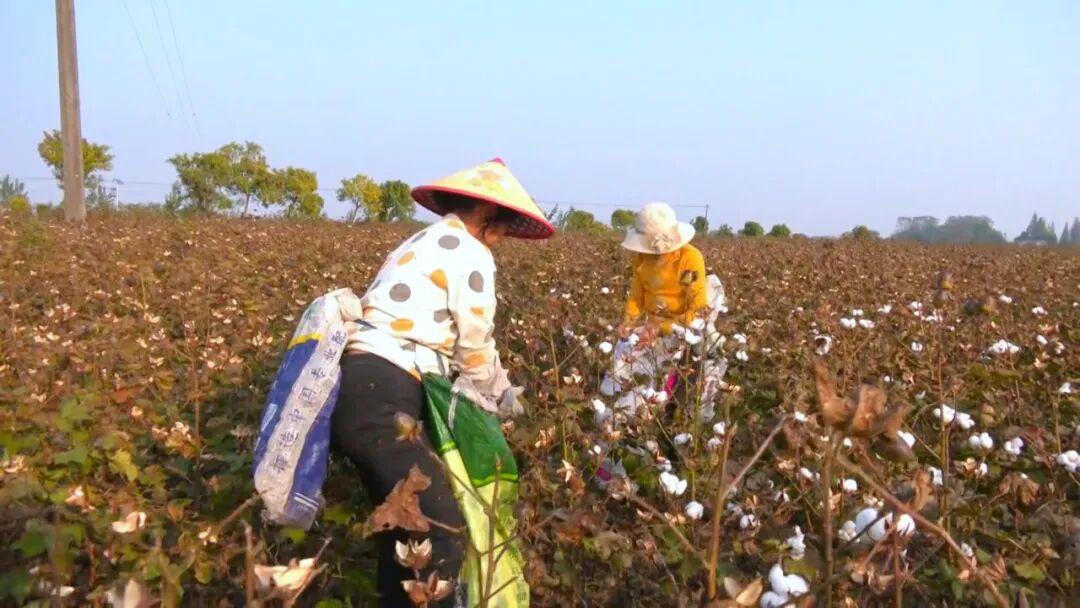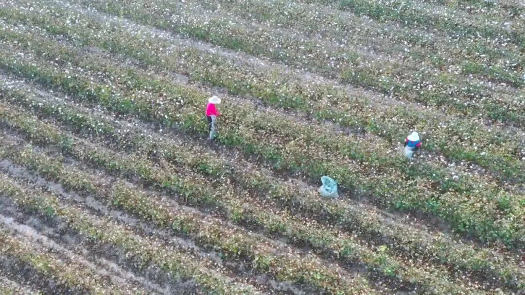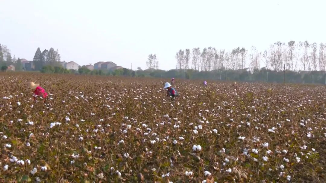 小新在秦市乡多福寺村的棉花种植基地看到,一团团、一簇簇洁白的棉桃争相吐絮。附近不少村民趁着农闲之际,躬身田间,进行棉花采摘工作。村民鄢阿姨干劲十足,双手在棉朵上不停舞动,采摘、装袋,一气呵成,脸上洋溢着收获的喜悦。