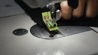 接着有人负责做袋、拼缝、压线