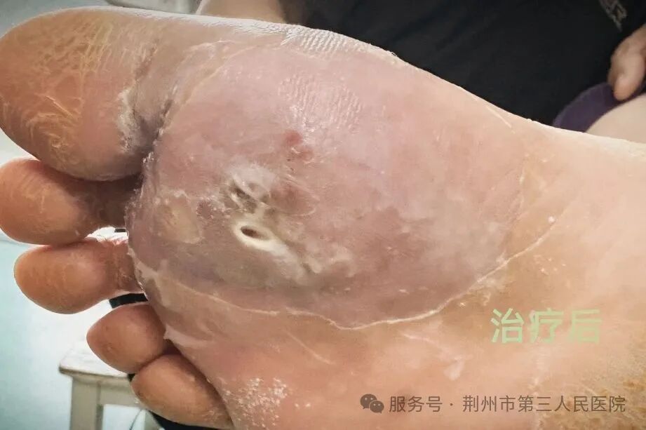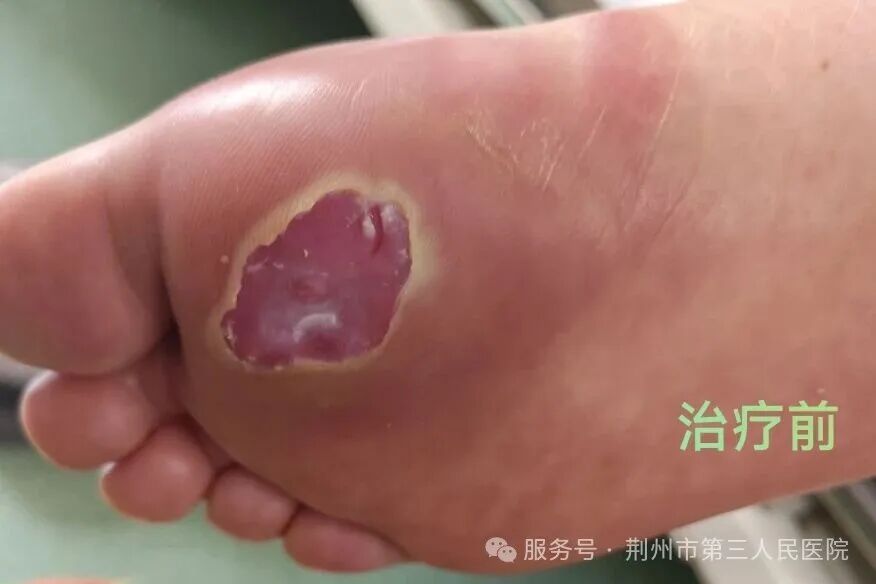 刘奶奶患有糖尿病,两周前不慎被钉子戳伤脚部,起初以为伤势不重,自行涂抹碘伏、服用消炎药,却不料伤口逐渐感染,出现红肿热痛症状,甚至影响进食睡眠。家人察觉后,立即用轮椅将她送至荆州三医烧伤整形科。初诊时,刘奶奶面容憔悴,对治疗方案心存疑虑,经管床医护人员反复耐心讲解病情,她才逐渐配合治疗。目前,刘奶奶的伤口感染已得到控制,正朝着良性愈合方向发展。