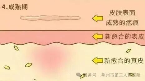 这是愈合的最后一步,伤口可能会发痒,但切记不可搔抓。新形成的皮肤组织尚未完全愈合,搔抓易导致二次损伤、伤口重新开裂。若伤口顺利走完这四个阶段,就说明正稳步康复。