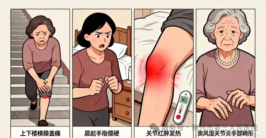 4. 特定类型信号:骨关节炎多见于肥胖中老年人;类风湿关节炎偏爱35-50岁女性,可能导致关节畸形;痛风性关节炎突发,脚趾、脚踝红肿热痛显著。