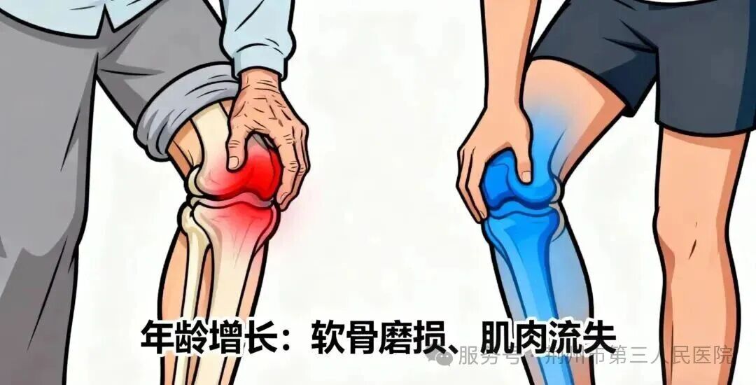 1. 年龄增长:软骨磨损、肌肉流失,导致关节缓冲功能减弱。