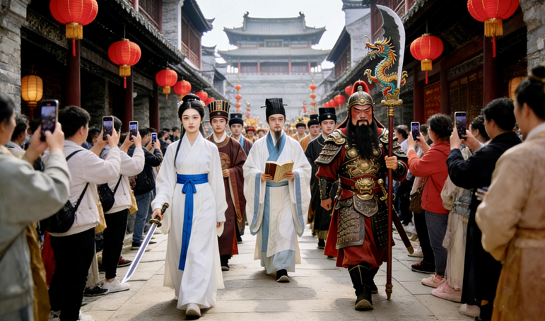 2025年12月31日至2026年1月3日期间,“荆州十二时辰”项目以古城四大片区为舞台,将实景短剧、仙侠奇幻游、微演艺、江湖音乐会与三国影视城、灵剑山仙侠IP相结合,打造20个场景。通过四区联动,共塑一座可游、可感、可沉浸的千年活态古城,为游客带来全天候、流动式、沉浸式、多业态的文旅体验。