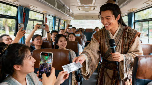 内容:将观光车作为流动性演艺场景。车辆命名为 “赤兔马”,对外观和内部进行美陈包装,增强标志性和氛围感。车上司机、导游均由NPC 扮演,在车辆行驶过程中服务游客,展开故事性讲解、互动游戏或简单演艺。