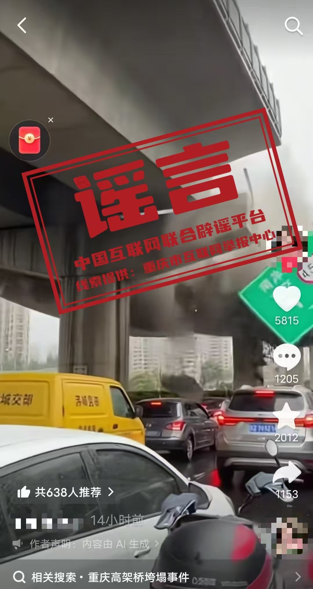 辟 谣  重庆“南岸立交”发生坍塌系AI生成
