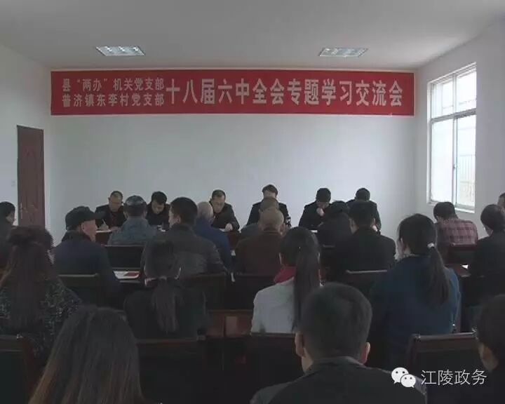 云上江陵报道:11月9日下午,江陵县“两办”机关支部前往普济镇东李村,和村党支部共40多名党员,就党的十八届六中全会精神进行了学习交流。
